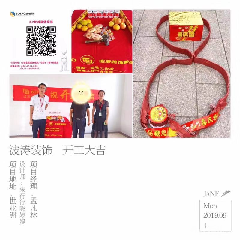 镇江波涛装饰  >  [在建工地] 世业洲王先生2019年9月16日开工大吉——设计师朱行行,陈婷婷——项目经理孟凡林