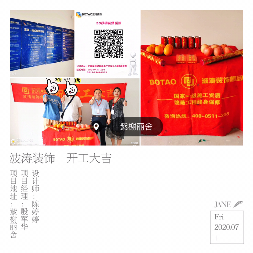 镇江波涛装饰  >  [在建工地] 紫榭丽舍朱先生2020年7月10日开工大吉--设计师陈婷婷--项目经理殷军华
