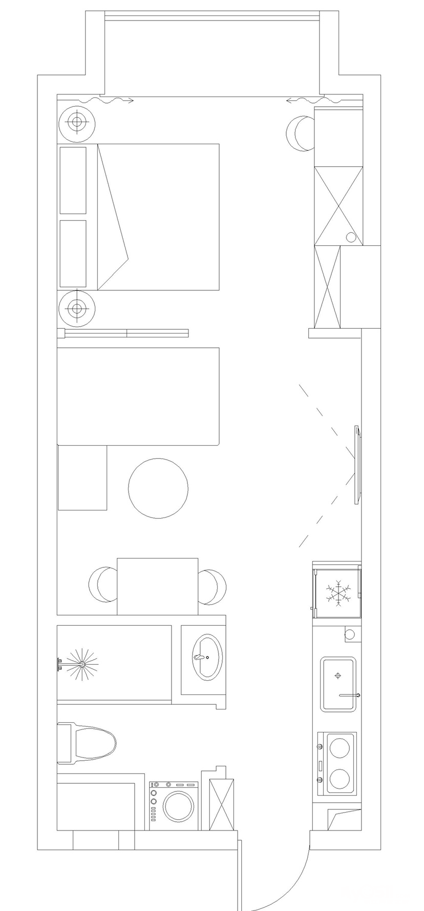 柒星苑公寓楼,一个开间带阳台的公寓楼,装修前后对比,欧派全家桶的前后效果