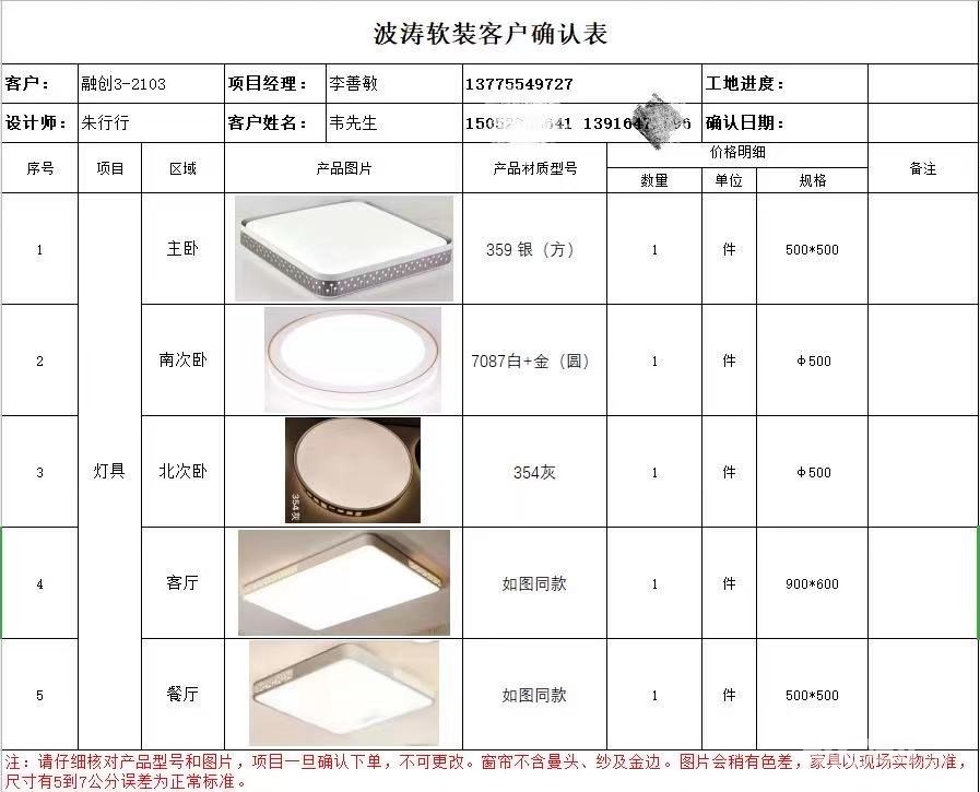 灯具、窗帘下单