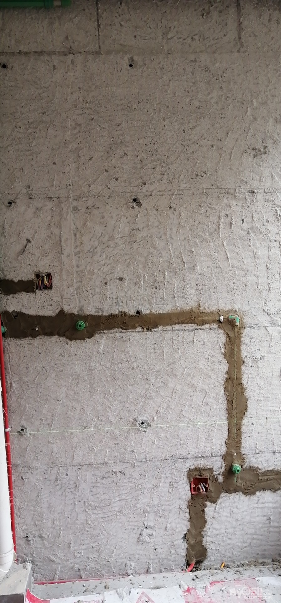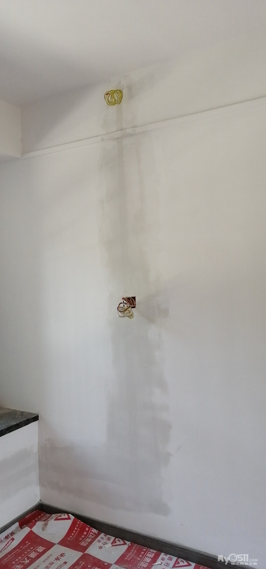 卫生间的墙面已经处理好了,现处理书房这面墙裂封问题,槽也开了,网格袋贴了