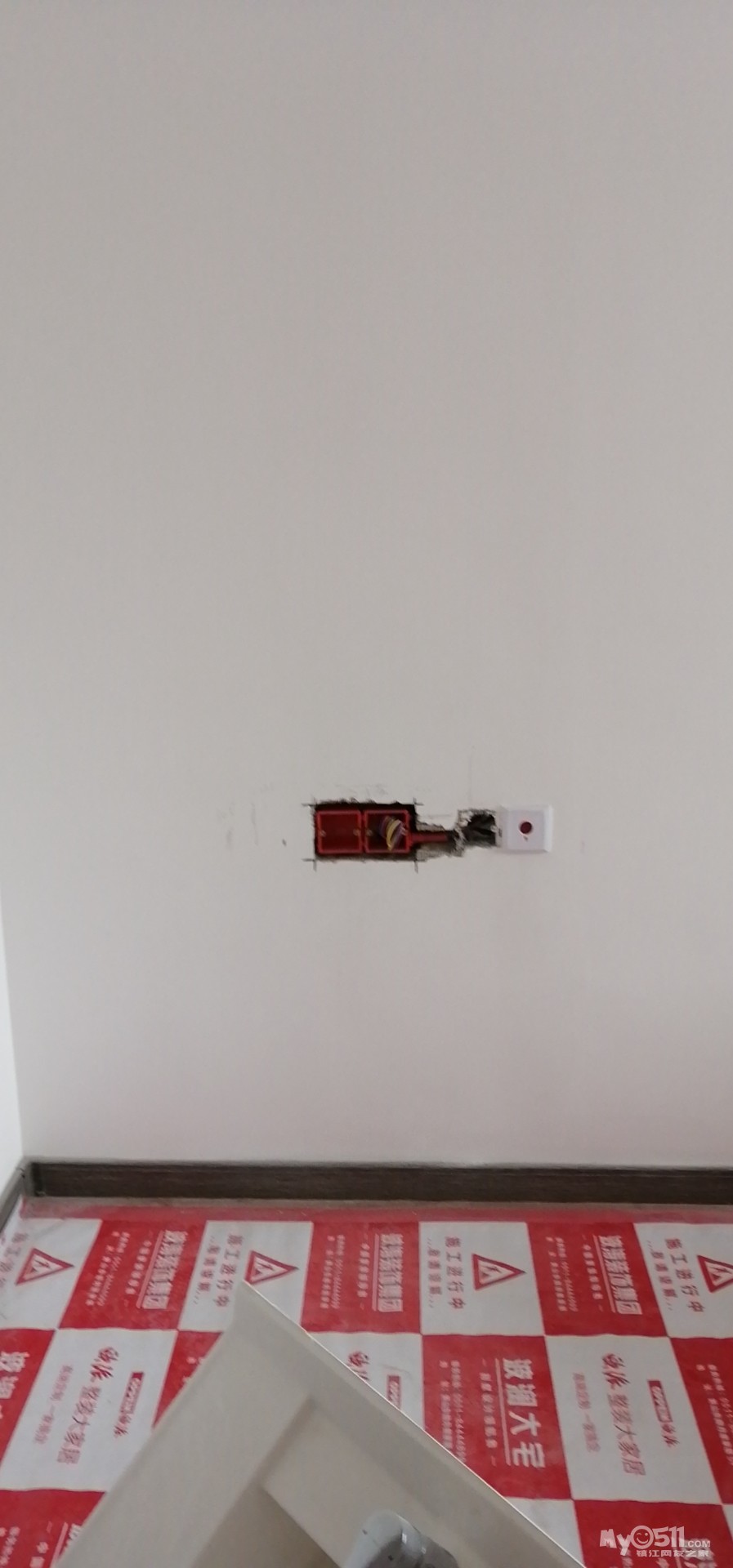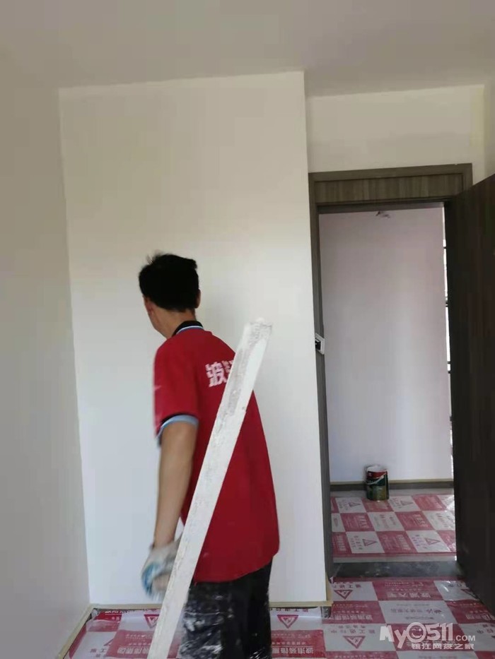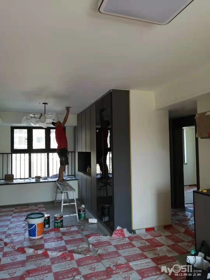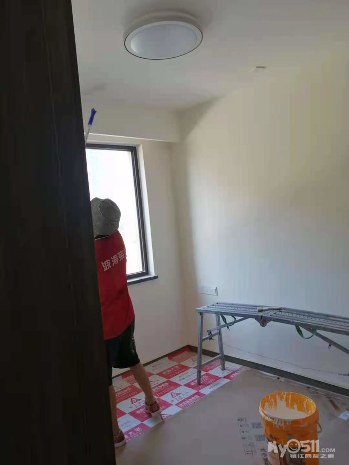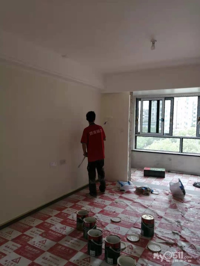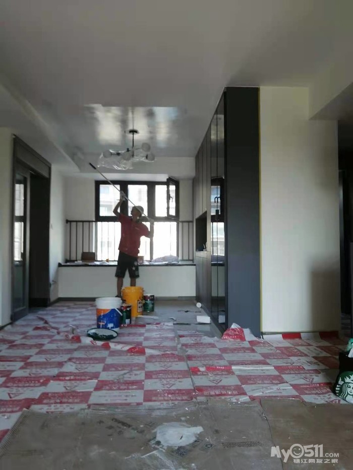 新房升级工程今天进行定位调整后的墙面油漆底层施工