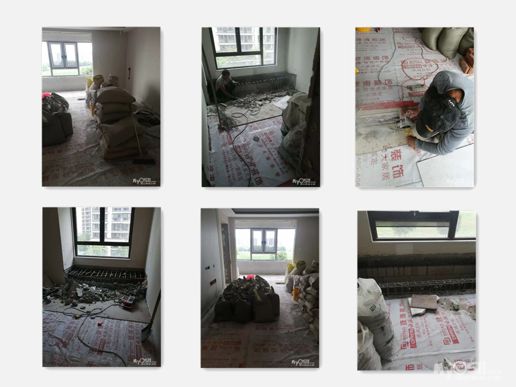 飘窗拆除,垃圾袋装化,水泥黄沙进场,发现北次卧一处漏水,需要物业处理