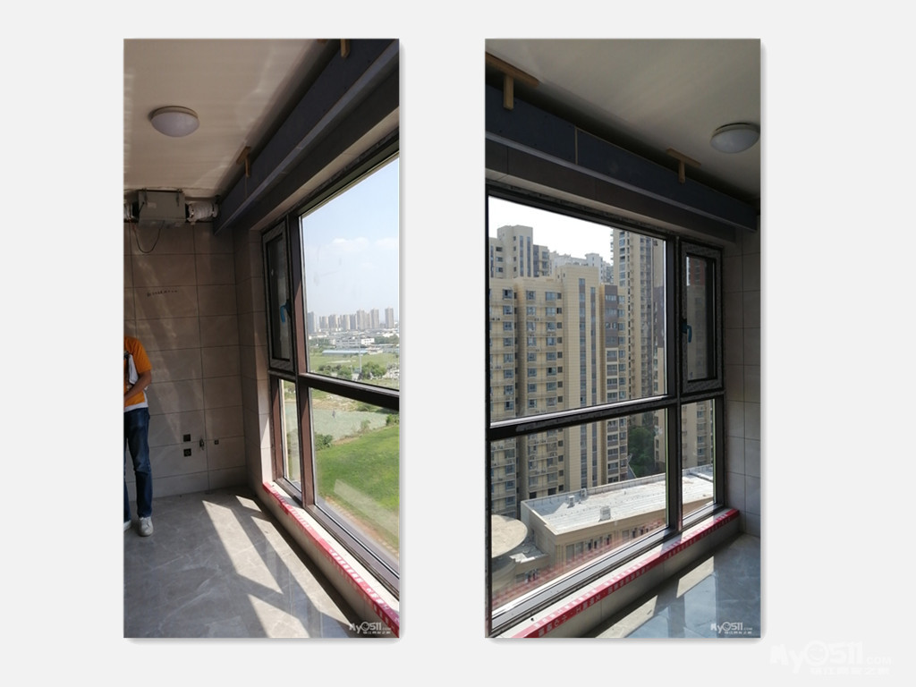 阳台玻璃已全部安装到位现场进行衣柜测量和门套的测量