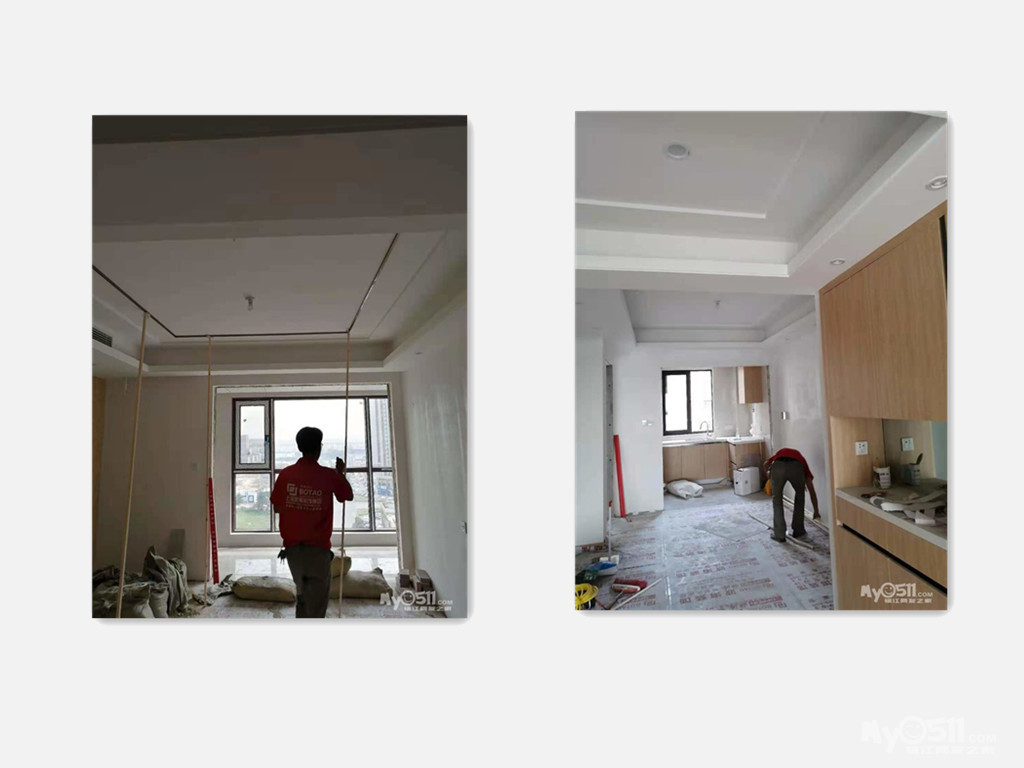 今天木工的吊顶和阳台窗帘盒的施工