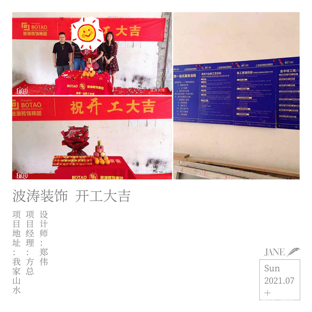 恭喜我家山水钱总吉宅于2021年7月4日8:18开工大吉--设计师郑伟--项目经理方荣明