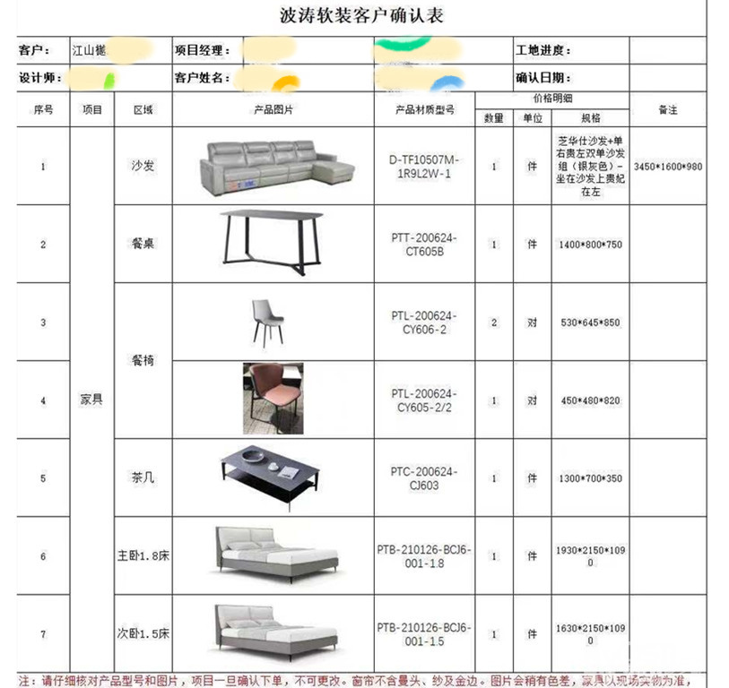 家具确定下单