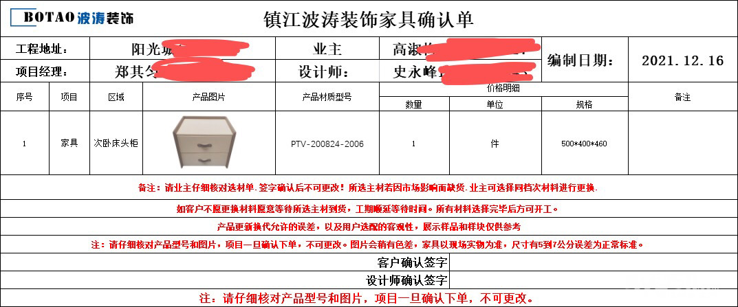 高姐家的家具下单