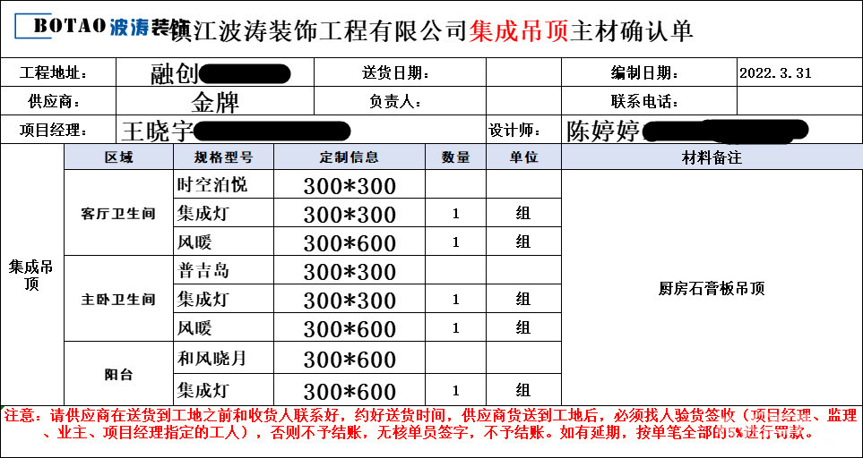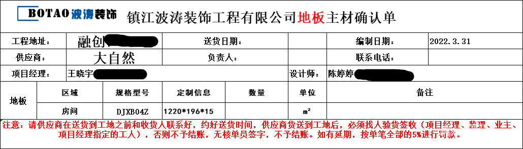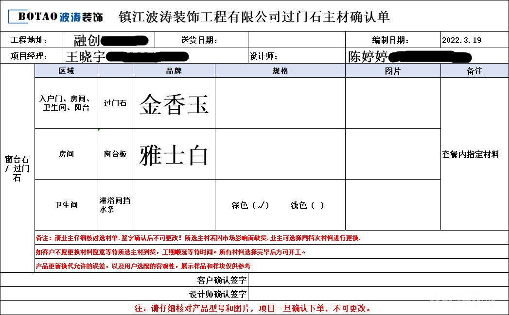 感谢朱总一家对波涛装饰的信任与支持 波涛装饰全力为您打造放心工程