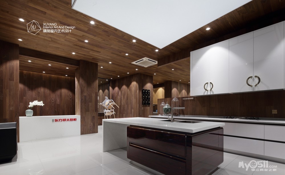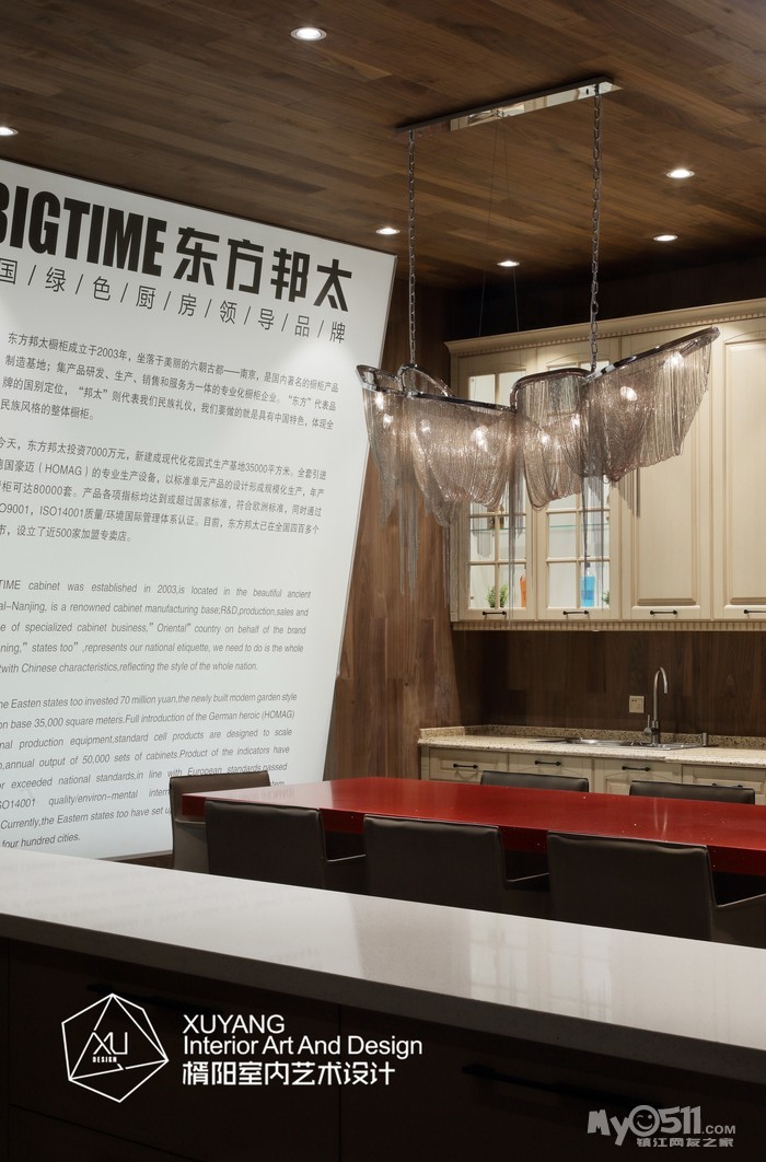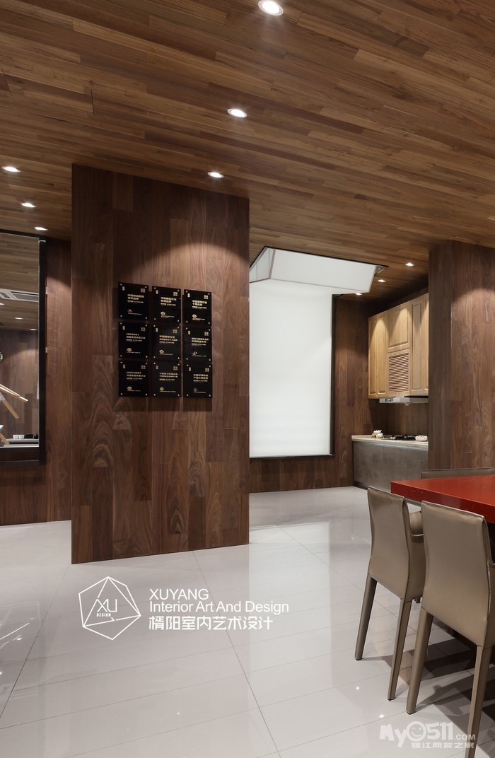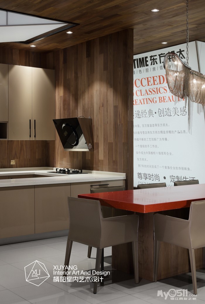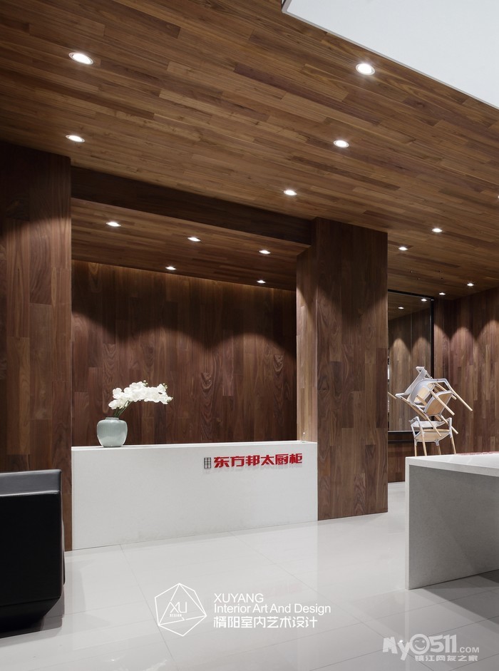 本案位于江苏省镇江市,是东方邦太橱柜的商业展厅。所谓展厅设计,其实是产品的展示空间。一般来说,产品为主体,空间为辅体,空间必须为产品做铺垫,而产品也必须融合于空间之中。因此,和谐是非常重要的一个要求。就本案而言,设计师舍弃繁复的装饰,打造简洁精练的空间关系,进一步提升展品的层次与质感,将这个200平米的展厅设计成了一个具有现代气息的木意空间。这既与该品牌的产品理念契合,又体现出“恋木”的东方情结。