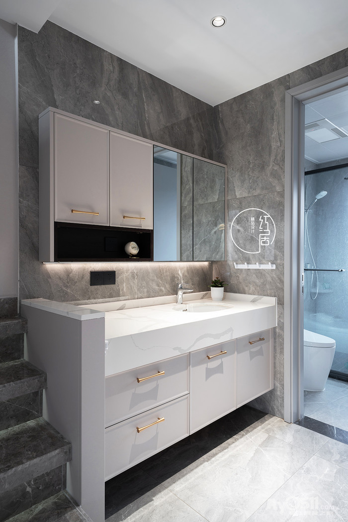 设计确实很重要,原本很难处理的干区在最终落地后显现的那么别具一格,着实是家里别具一格的美丽风景。搭配局部的柜镜让原来不算小的干区视觉更显宽阔,真是让人对这片区域从怦然心动,到一往情深。