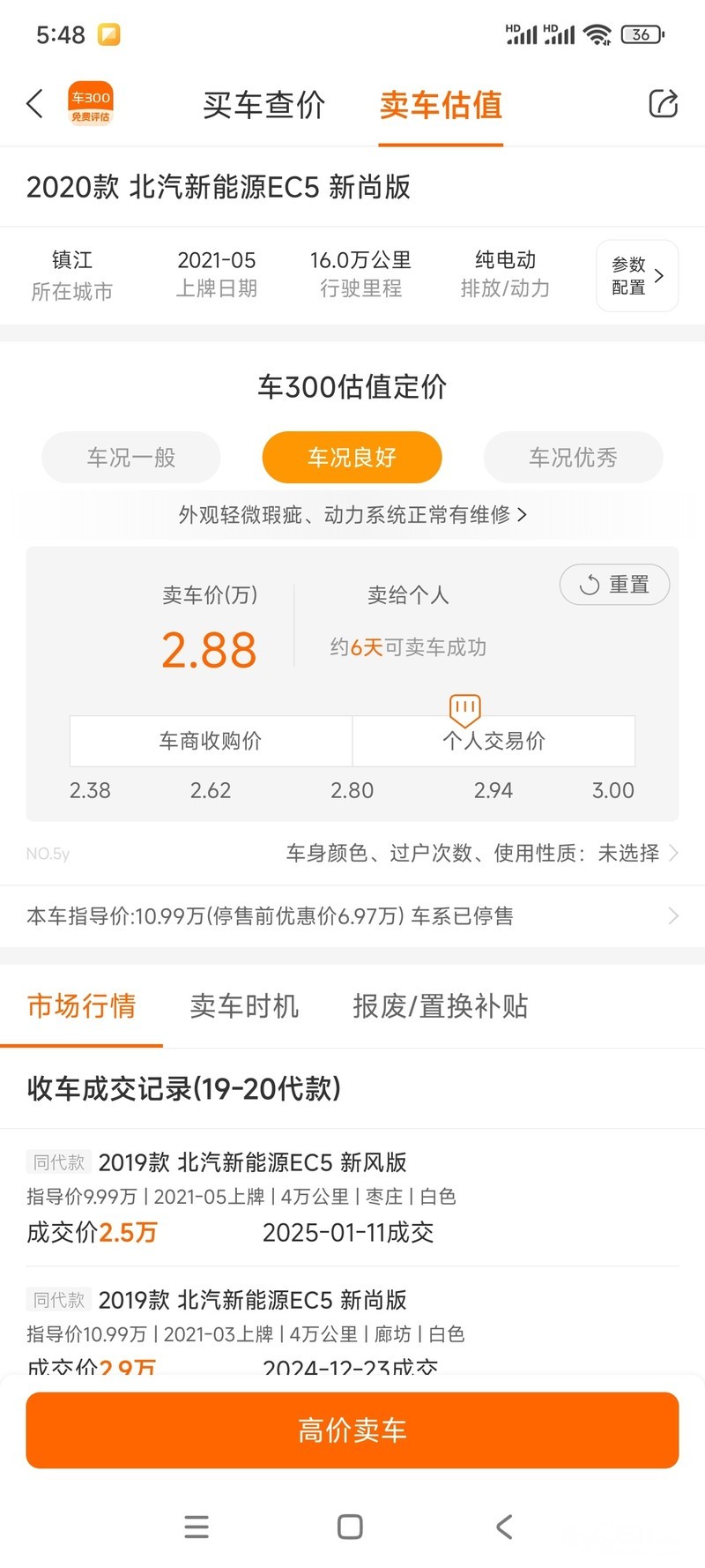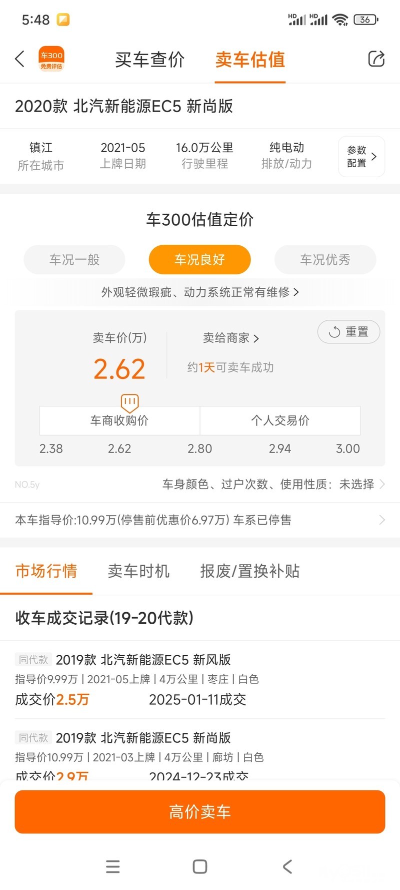 北汽新能源EC5,2021年5月上牌,白色,续航403公里,现在夏天300-310公里,开空调260-270公里,冬天260公里,一次过户记录。行驶16万公里,保养良好。配有快慢充接口,倒车影像,多功能方向盘,真皮座椅,大屏导航等丰富配置。车况优秀,适合日常代步,省钱省心。诚心出售,有意者联系看车。15695117895,车商勿扰!车商勿扰!谢谢!!!