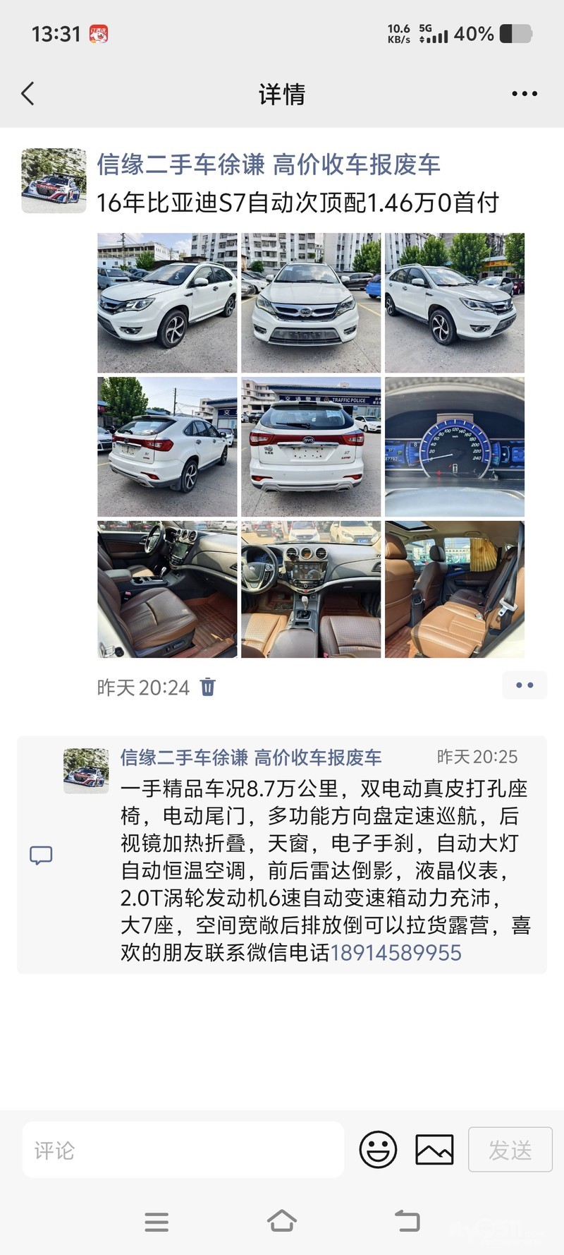 比亚迪S7 2.0T自动尊贵型plus,2017年上牌,巧克力棕色,个人置换下来的一手车,大七座suv,配置齐全,全景天窗,真皮座椅,多功能方向盘,一键启动,大屏导航,倒车影像,电动座椅,无钥匙进入,定速巡航,电动折叠后视镜带加热,车内干净整洁,加装流媒体后视镜,外观成色好,支持检测,目前行驶六万一千公里,保养五月份刚做,保险到25年12月底,后续如果想换比亚迪新能源的车,购买此车,可享受厂补15000!省补12000.合计2w7现金,喜欢的可以联系