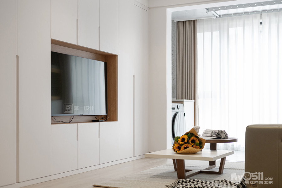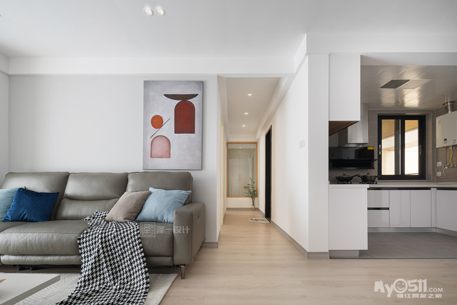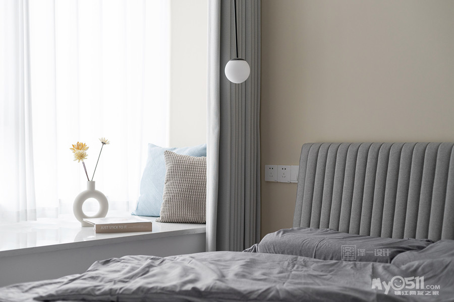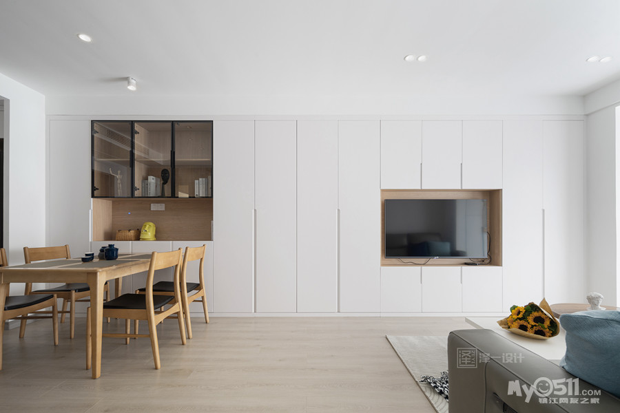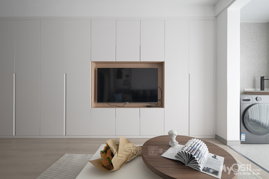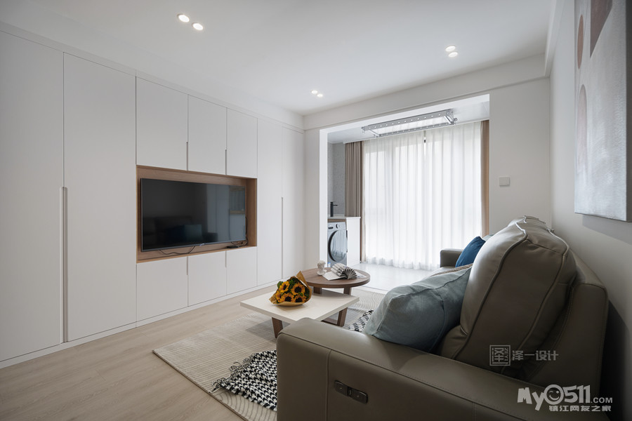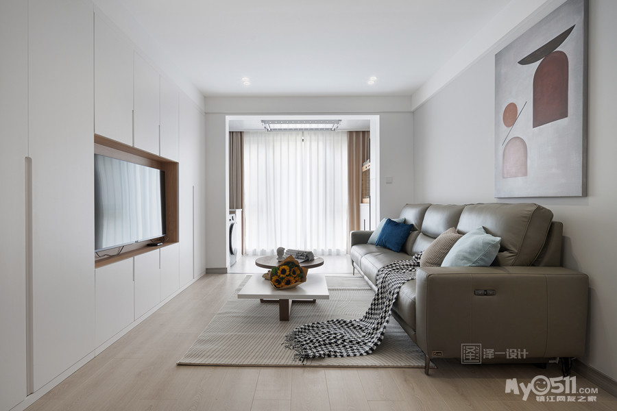 本案是一对年轻的业主为父母准备的养老房,90㎡两居室半,两口人常住,储物需求大,在空间上并没有做太多改造,客厅区域和生活阳台还是保留了原先的划分,对于房间的需求也只需主卧,次卧备用,干脆将主卧与北居室打通做成了套间,独立且私密;居住者喜好白色明亮系,整体选用中性色基调,饱和度低,视觉感舒适,风格简洁素雅。当我们的父母开始慢慢变老的时候,他们更渴望安静舒适的环境,所以在老人房装修的时候要多以舒适为主。
