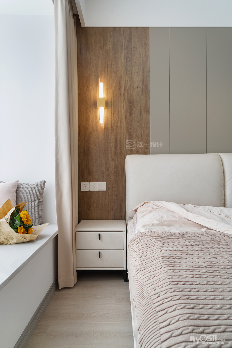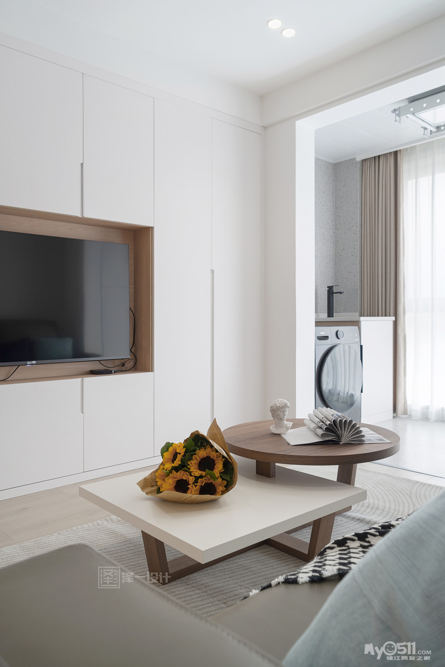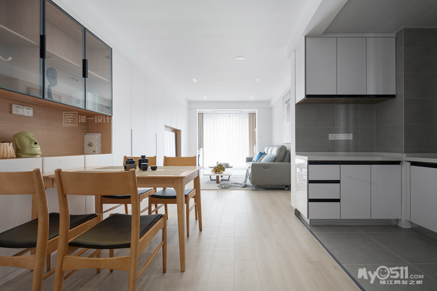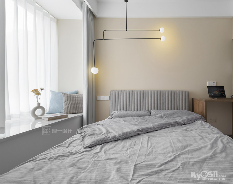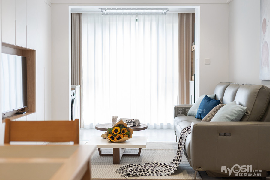 本案是一对年轻的业主为父母准备的养老房,90㎡两居室半,两口人常住,储物需求大,在空间上并没有做太多改造,客厅区域和生活阳台还是保留了原先的划分,对于房间的需求也只需主卧,次卧备用,干脆将主卧与北居室打通做成了套间,独立且私密;居住者喜好白色明亮系,整体选用中性色基调,饱和度低,视觉感舒适,风格简洁素雅。当我们的父母开始慢慢变老的时候,他们更渴望安静舒适的环境,所以在老人房装修的时候要多以舒适为主。