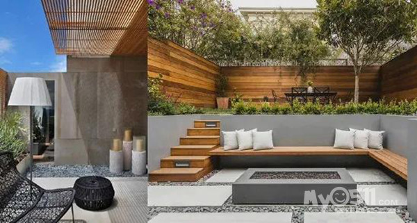现代风庭院在设计上会选择简洁的线条和造型,也会简单加入一些混搭的手法,比如自然风、中式或日式元素。