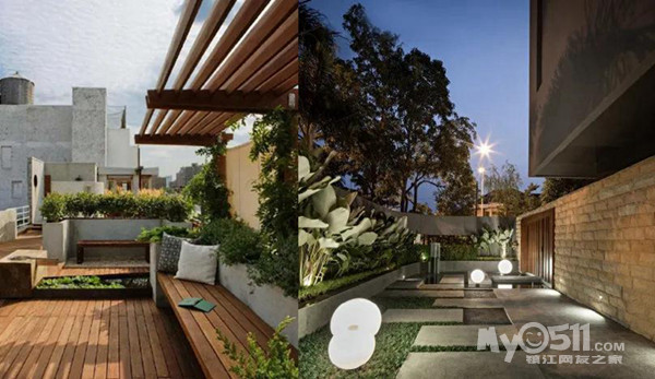 大多数的联排别墅后花园都比较狭长,所以一定要合理利用各种空间,并保证和邻居之间的私密性。