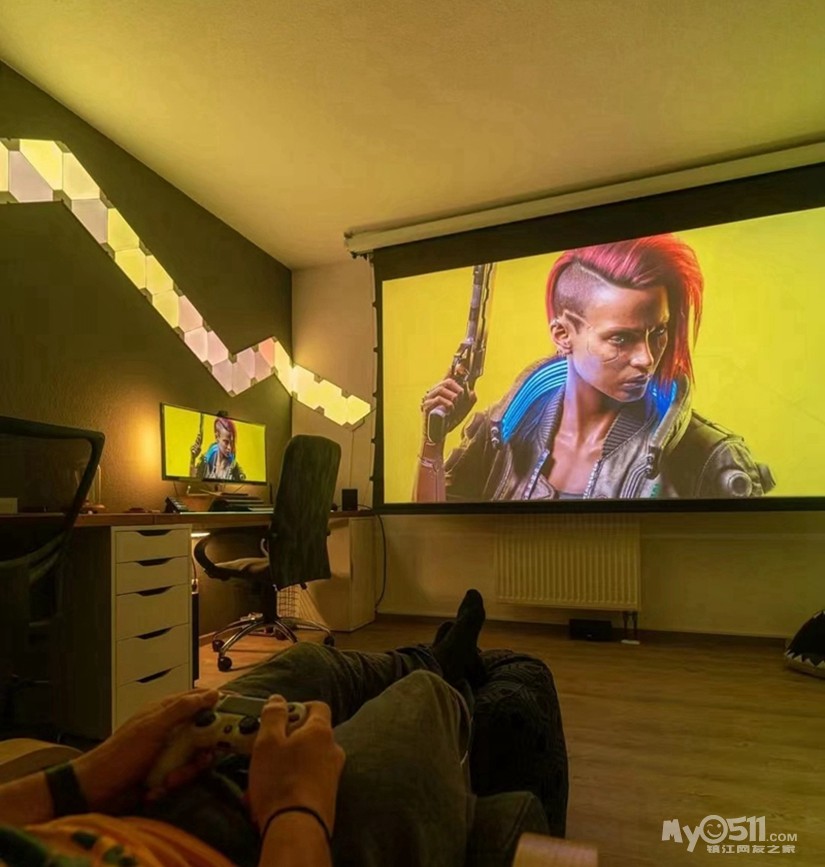 面对休息区加装一个投影,喜获一块个人观影区,半夜看电影、看球赛,看完就能睡,太舒服了。