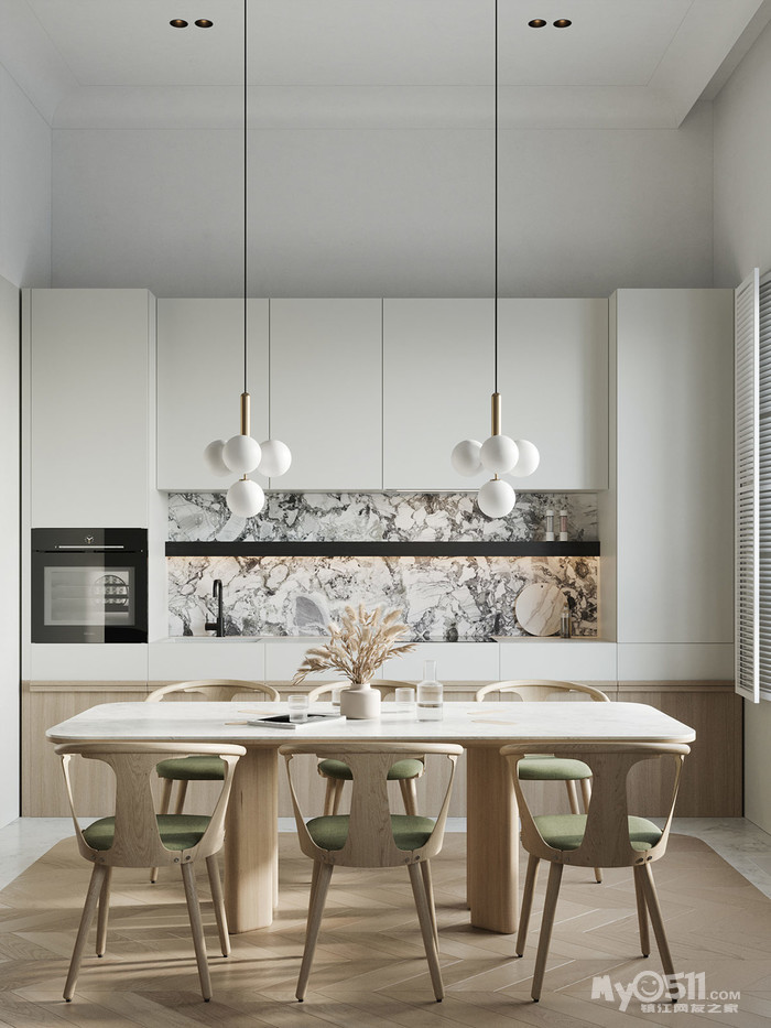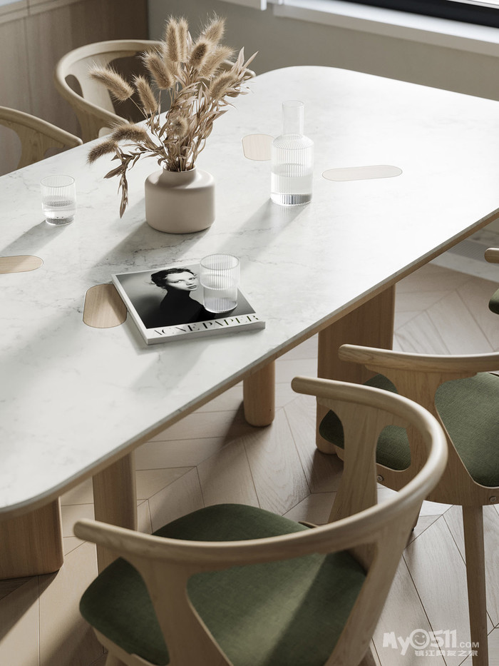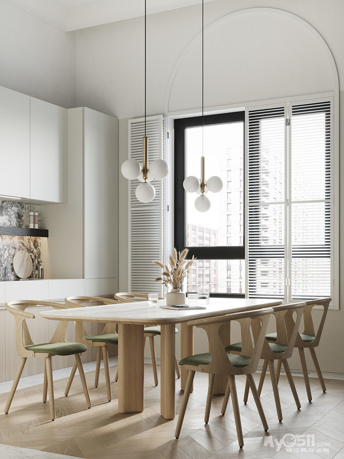 在温暖的色调里适当的增加了黄铜五金和镶板,