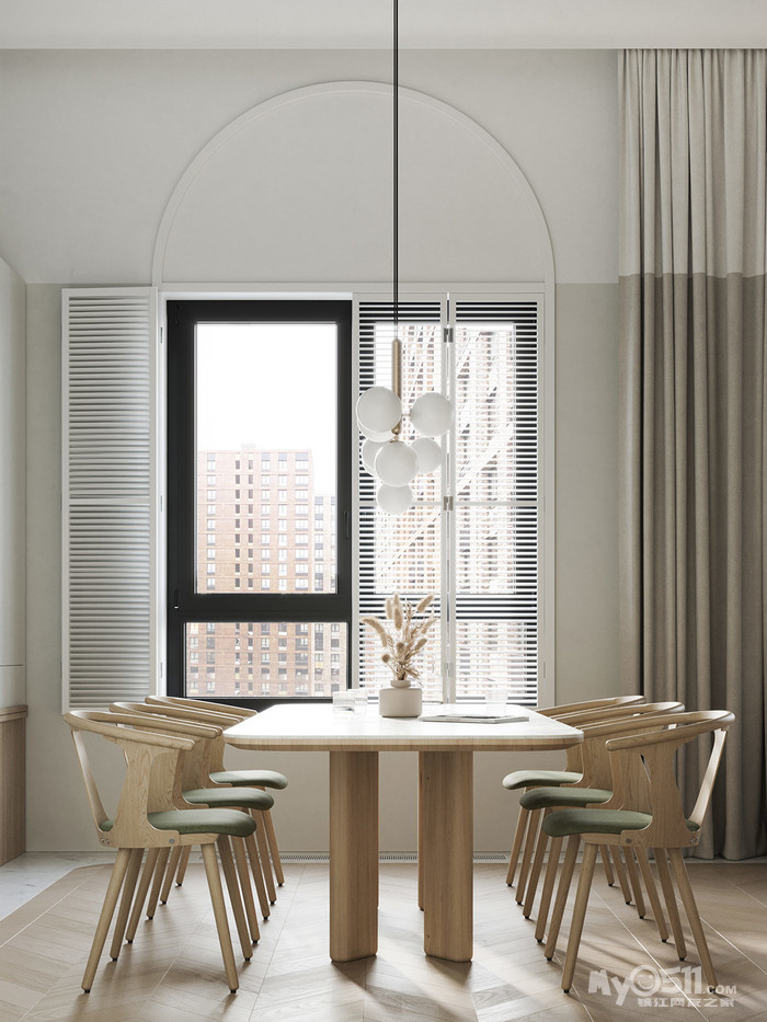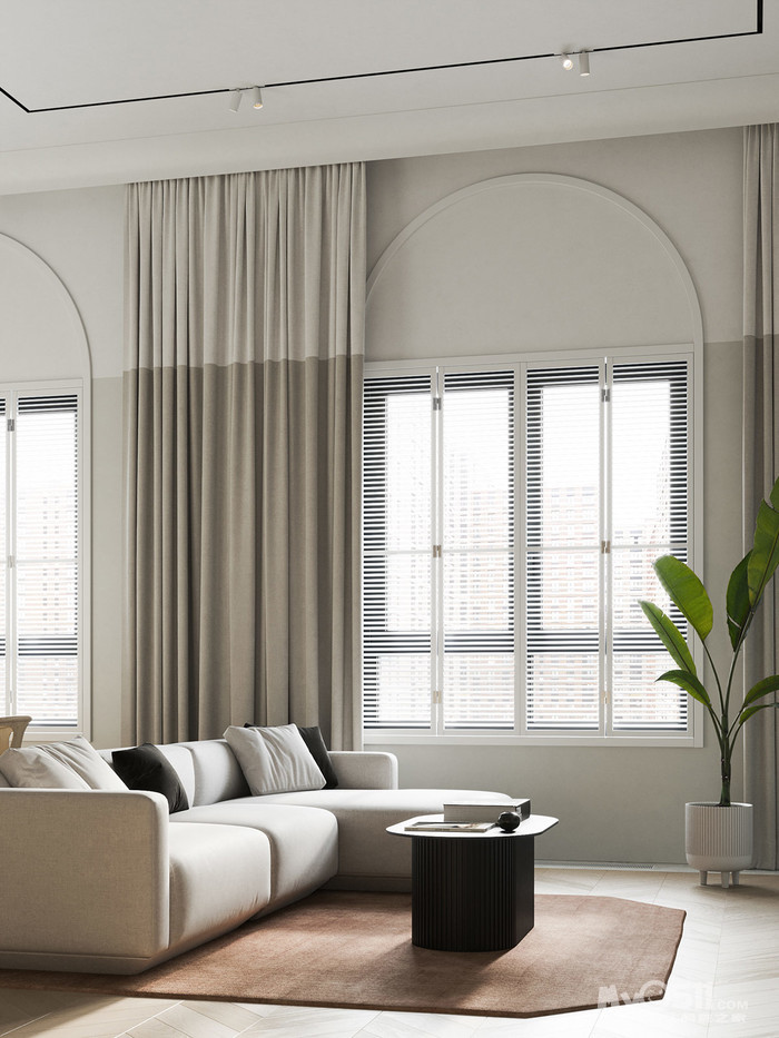 一个没有明显风格的项目,将门廊变圆,拱门染黑,选择最简约的屋檐。