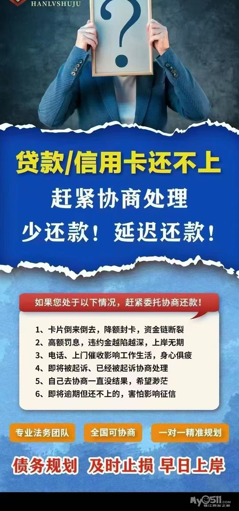 专业的法务团队,解决催收问题,也不会被起诉,最长分期60期5年还款,利息还减免,咨询又不收费