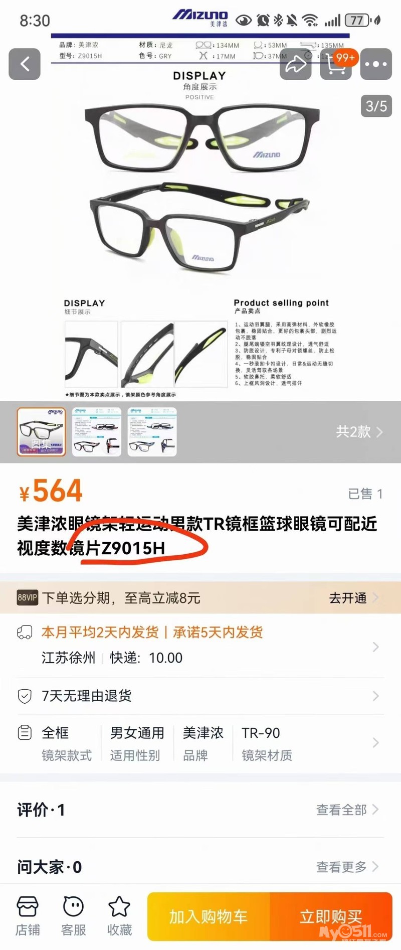 大店卖到六七百的美津浓运动眼镜,淘宝564,我家200多亏本出,还有最后几副,出完结束