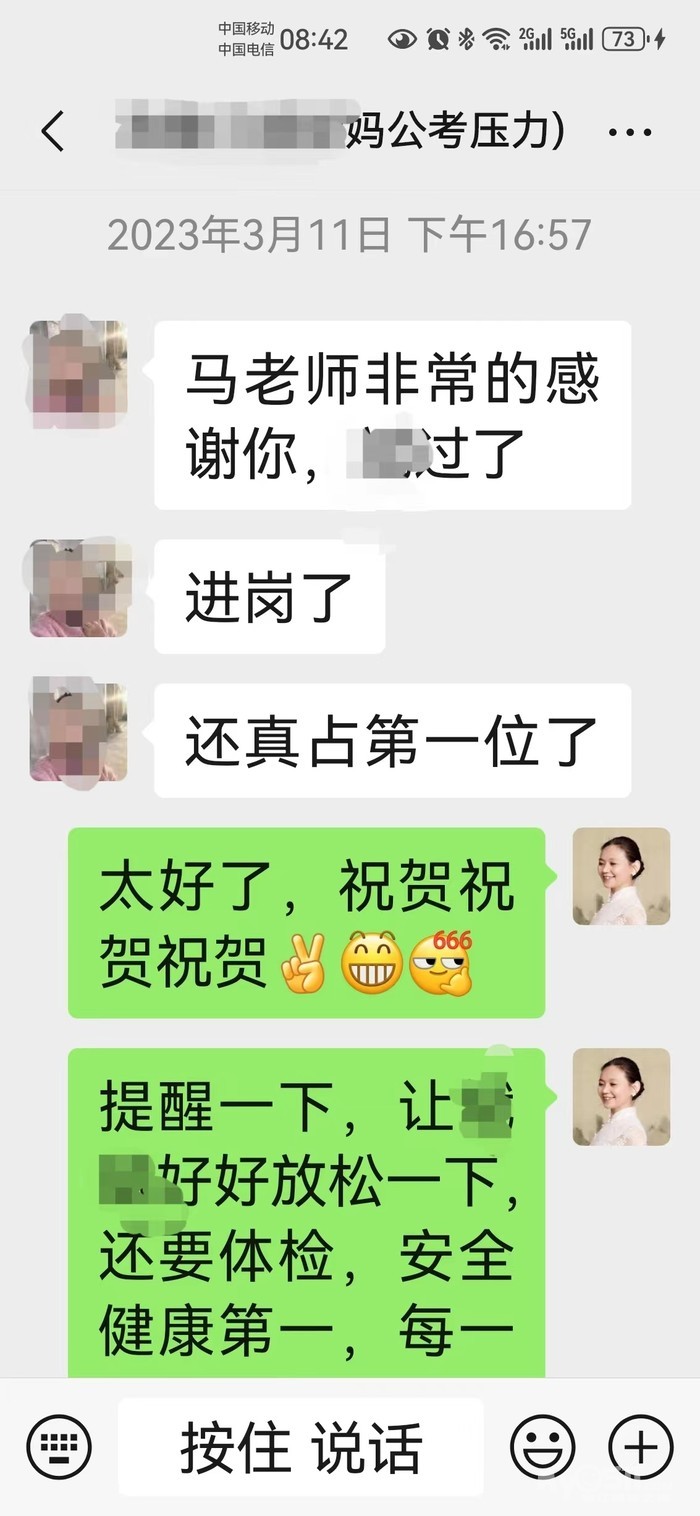 案例C连续多年公务员考试都输在面试上,越考越焦虑,越考越差,咨询后面试反超,如愿入职公务员队伍。