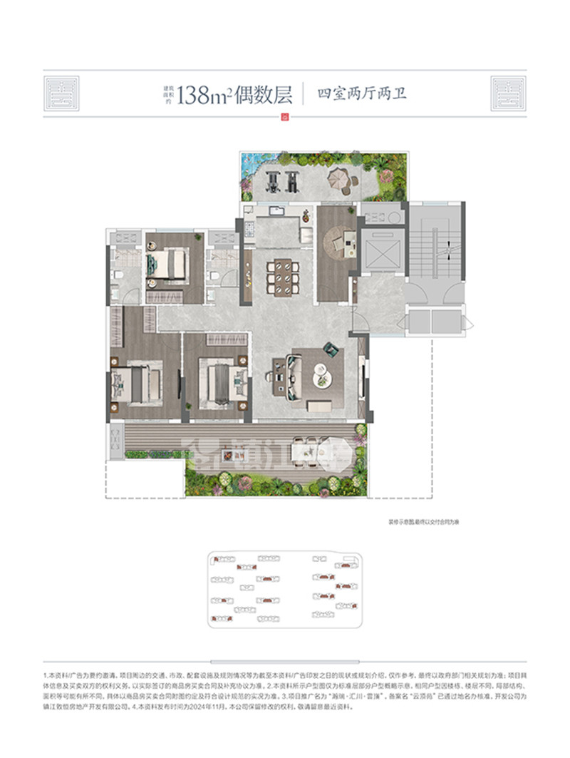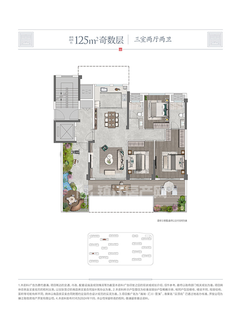 瀚瑞汇川雲嵿在售2#、3#小高层,建筑面积约125-148