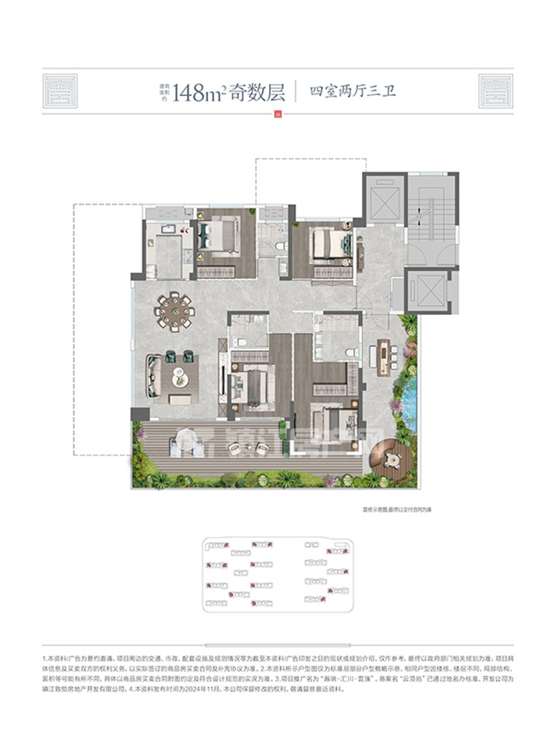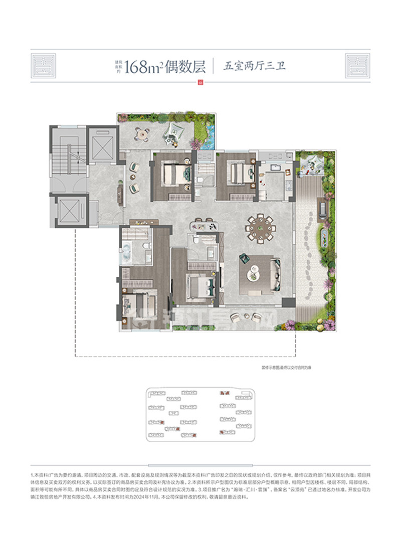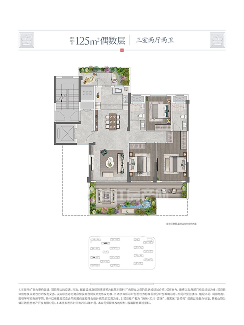 瀚瑞汇川雲嵿在售2#、3#小高层,建筑面积约125-169