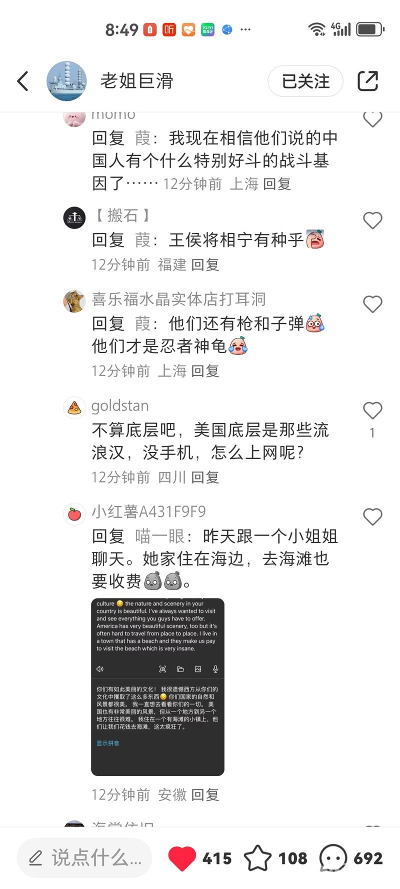 小红书上的中国网友不地道告诉美国人 第一条:王侯将相宁有种 第二条 枪杆子里出**
