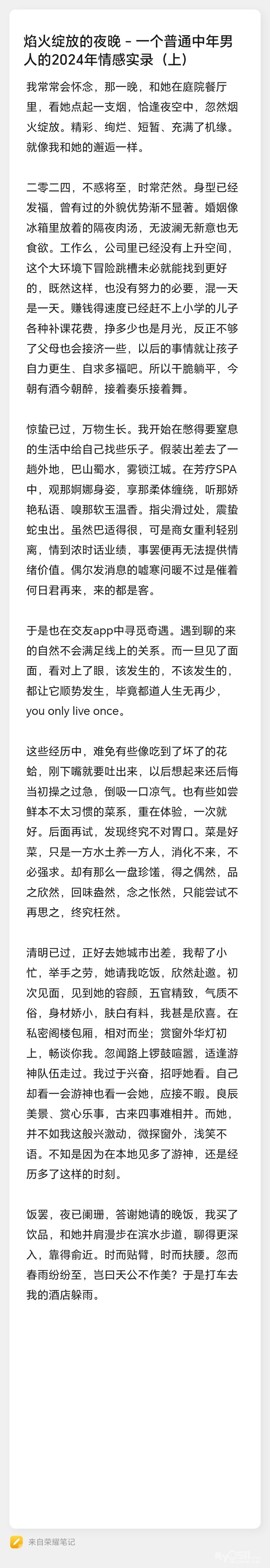 焰火绽放的夜晚 - 一个普通中年男人的2024年情感实录 更新第四部分在27楼