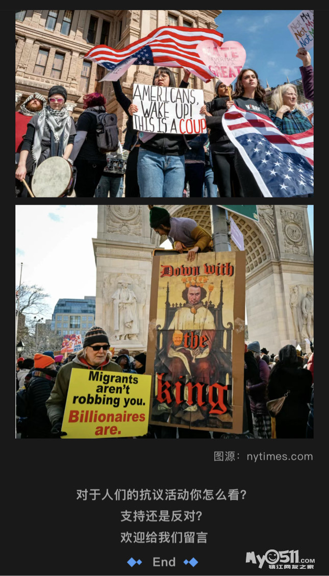 纽约爆发大规模游行!成千上万人涌上街头,“我们要总统而非国王”!