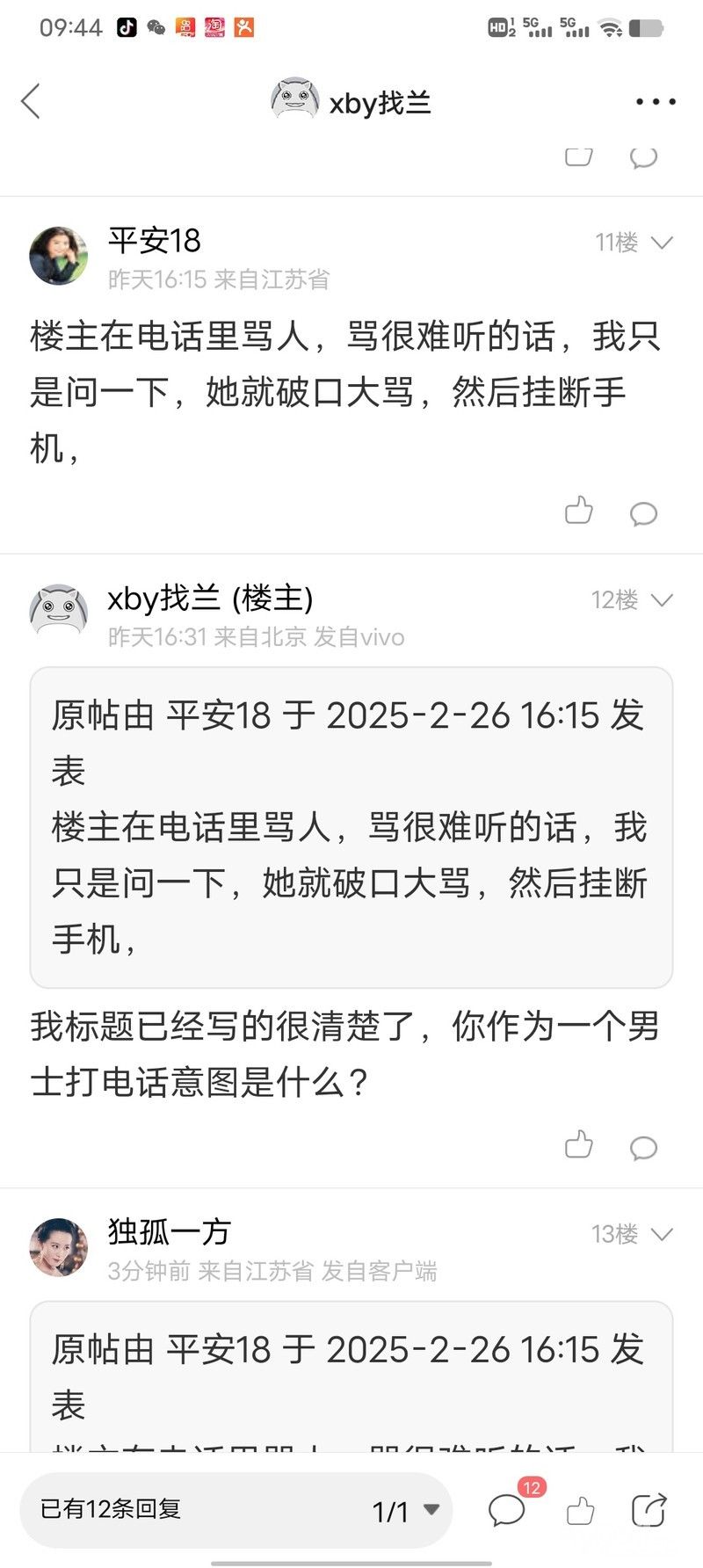 因为自己家丁卯房子有一个卧室空着,所以想找女性合租,本人是女性住次卧。合租要求发布的时候在平台写的和清楚,但还是有很多男性联系骚扰打扰,真搞不懂这些男的就这么无聊吗,觉得在网上胡言乱语胡说八道,不用担什么责任?更有甚者发信息说房东多大找不找男朋友,说自己不想花钱在外面租房了,想搬过来白住,还有放鸽子的,看的玩玩的,其实放鸽子看着玩玩的倒也没什么,主要是打电话发信息那些巨心不良的男士就很让人反感,比如下面这个人,不要看0511头像是女的,其实是男