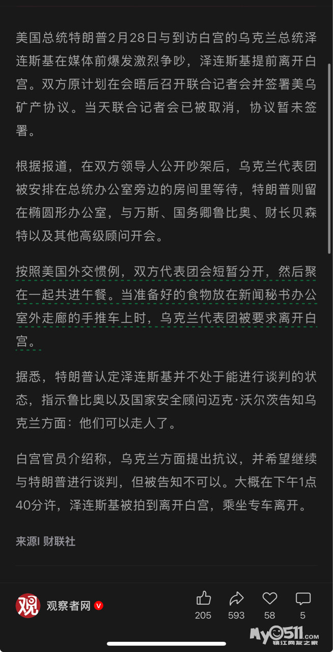 » 泽连斯基没吃午饭就被轰出白宫