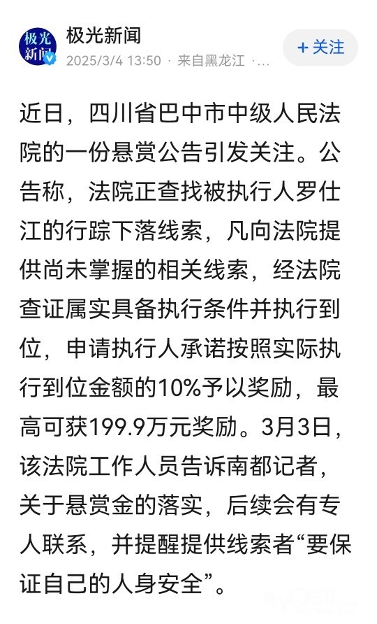 广州男子欠钱两千万被悬赏近200万元,照片公布!法院回应