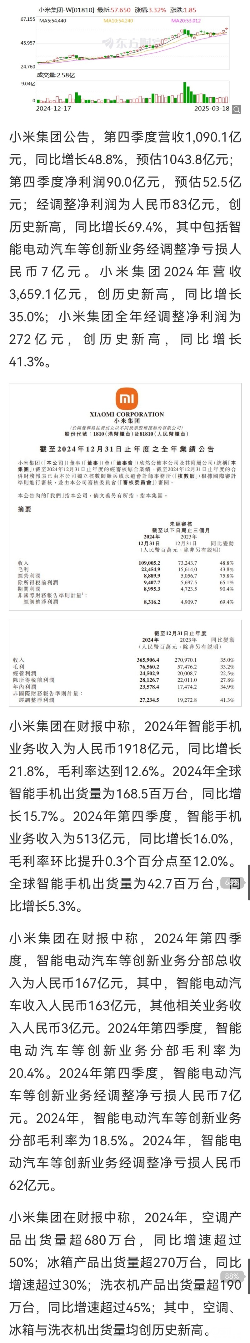 » 小米营收同比增35%达3659亿 历史新高 雷布斯估计又要当首富了