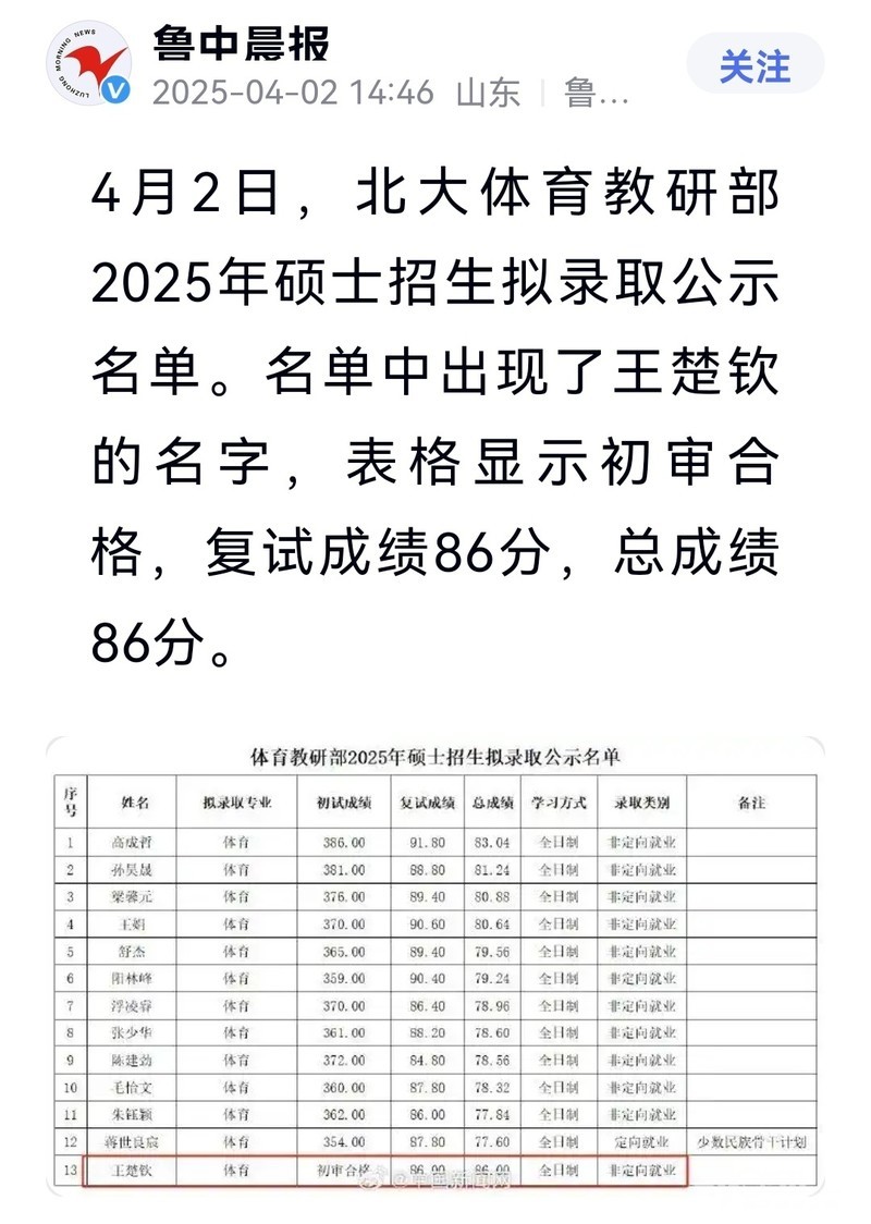 » 王楚钦拟被北京大学录取