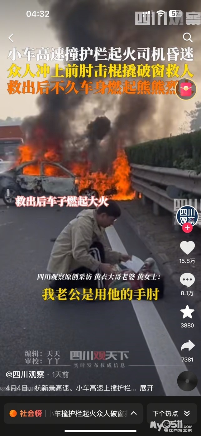 如题,高速路上马自达汽车车祸自燃,女司机昏厥,车门打不开,还好是白天人多,齐心把驾驶位车窗砸开,把女司机拖了出来!希望网友@马自达老总给个说法,油车怎么会自燃!