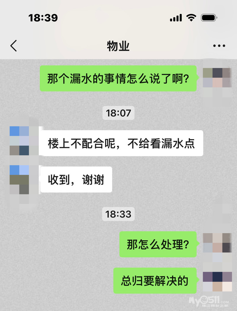 前几天跟物业说了,物业上门后回复我,说楼上人家不配合,不开门。