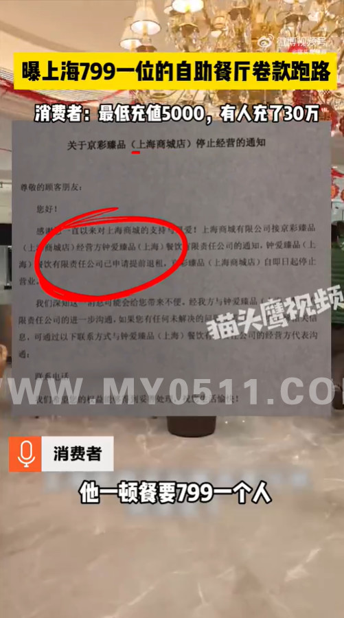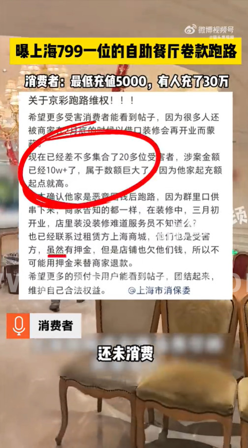 » 曝上海799一位的自助餐厅卷款跑路,消费者:最低充值5000