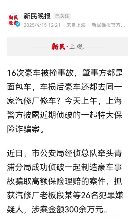 » 豪车16次被撞,都是面包车干的!上海警方侦破一起特大保险诈骗案