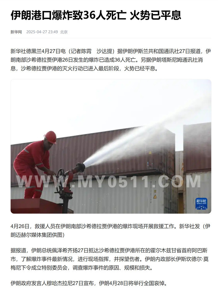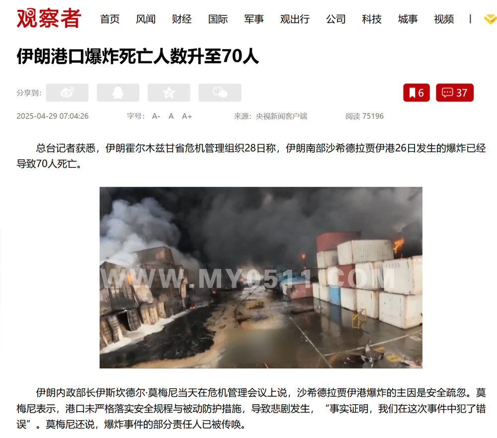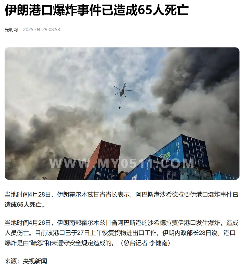 » 伊朗阿巴斯港口发生爆炸70人死1200多人受伤 主要原因是安全疏忽