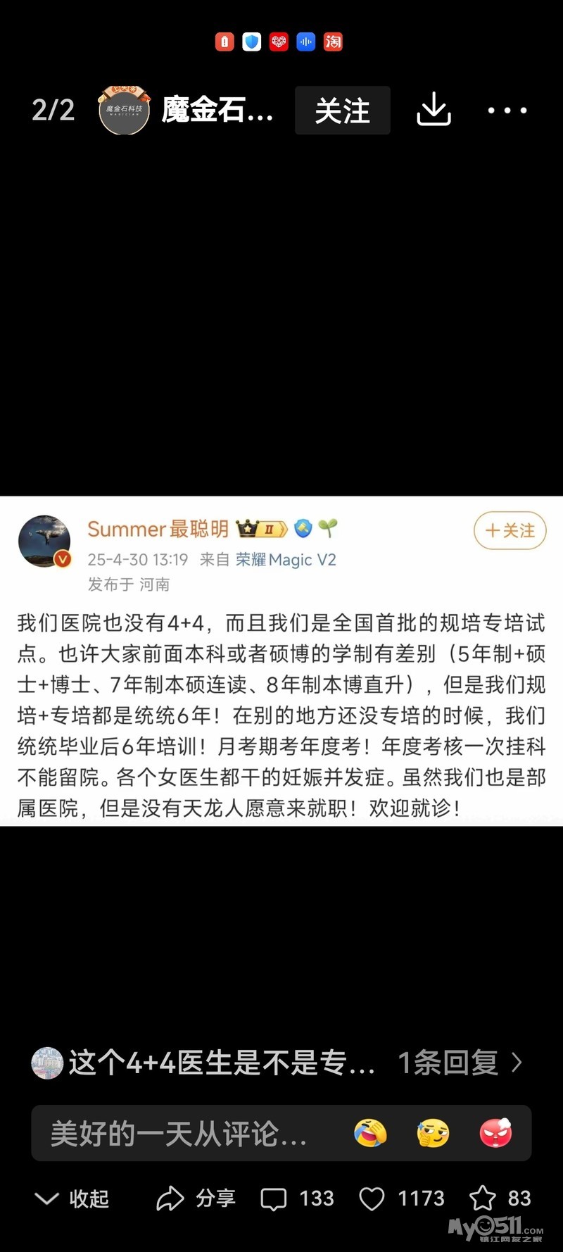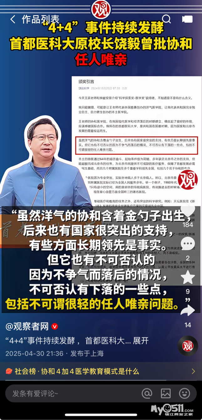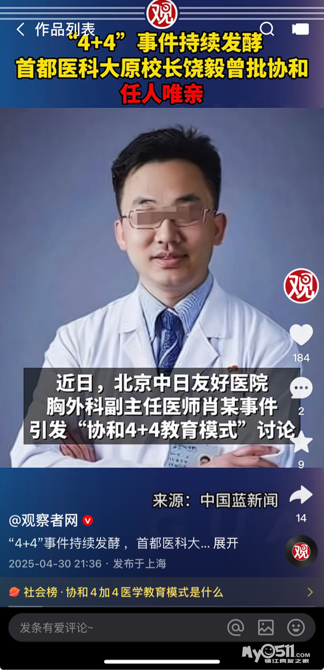 协和4+4培养模式曝出之后,各地医院纷纷自证“我们这儿没有4+4”,一线医生甚至已经开始穿戴写有“本人非4+4”的出诊装备,可见现行制度下4+4培养模式的基层口碑有多恶劣!不光老百姓不放心把自己交给4+4,一线医生也羞于与4+4为伍!(转自头条)
