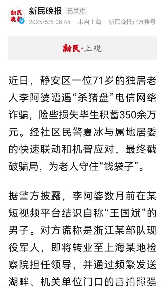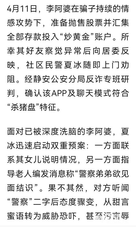 » 350万元险被骗,独居阿婆深陷“黄昏恋杀猪盘”,民警一招揭穿