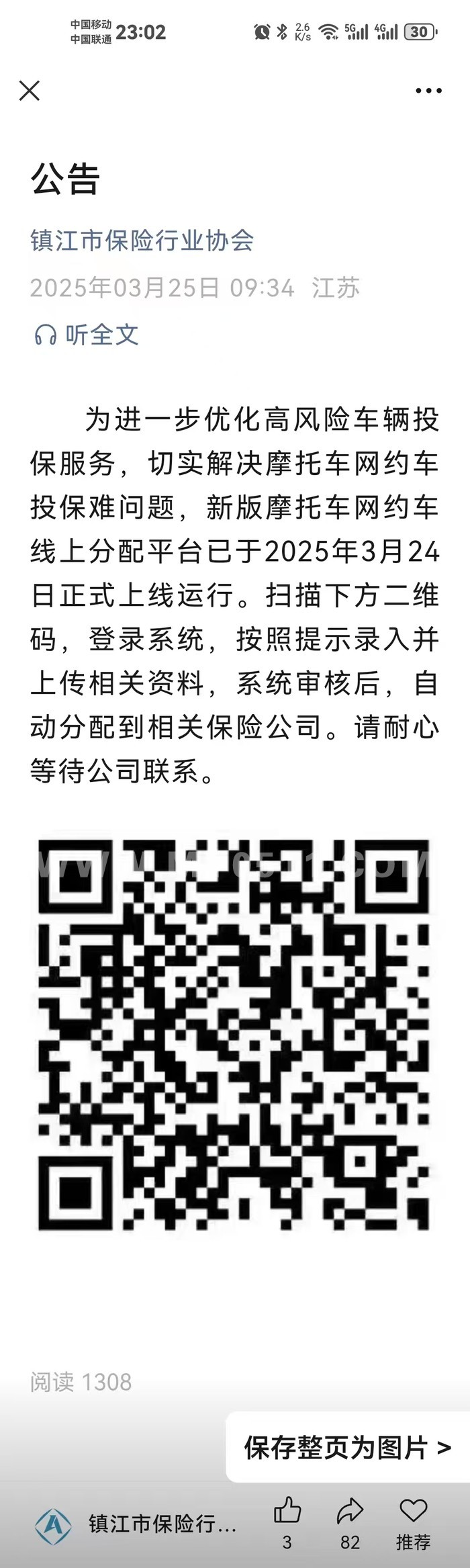 镇江摩托车承保二维码谁有,去年的好像没有用了