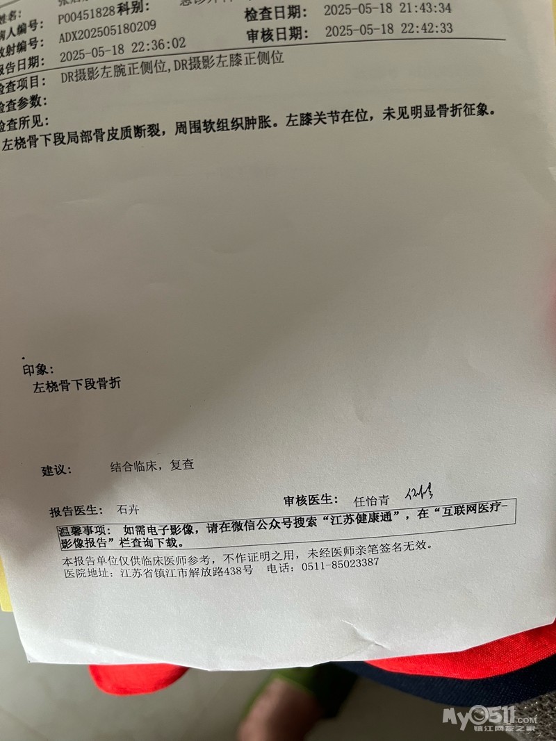 昨天5.18日夜里20:40左右,一家三口由南向北骑行于九华山路与南徐大道路口交汇处镇江市交通运输局附近时,由于慢车道与人行道道路路牙设置高度不合理加上灯光昏暗,导致年满12周岁孩子骑车摔倒导致手臂骨折