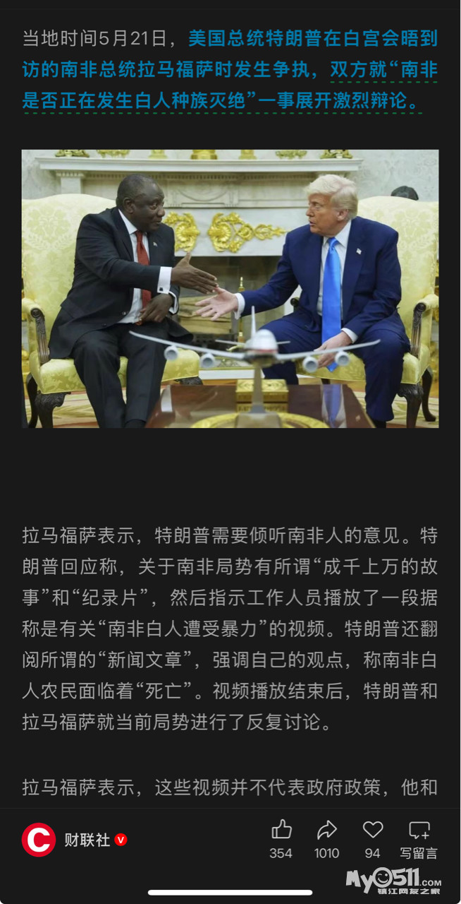 特朗普与南非总统在白宫发生争执