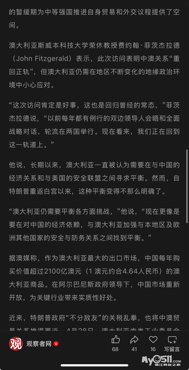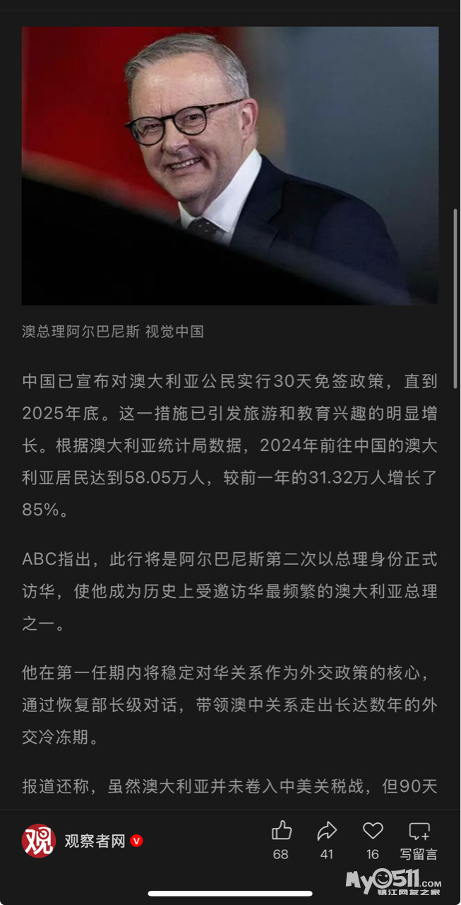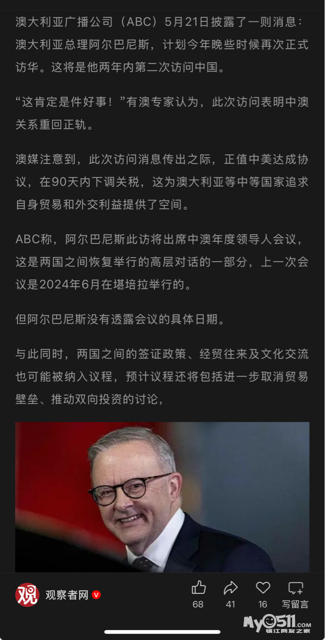 » 澳总理还想访华,"这肯定是件好事"