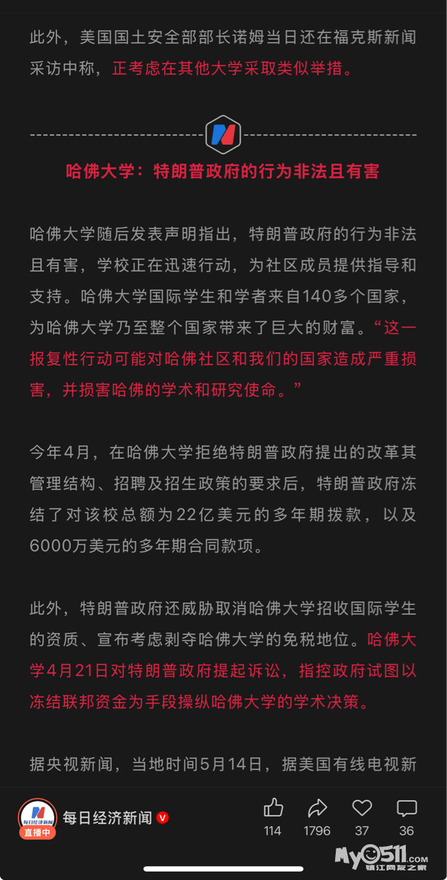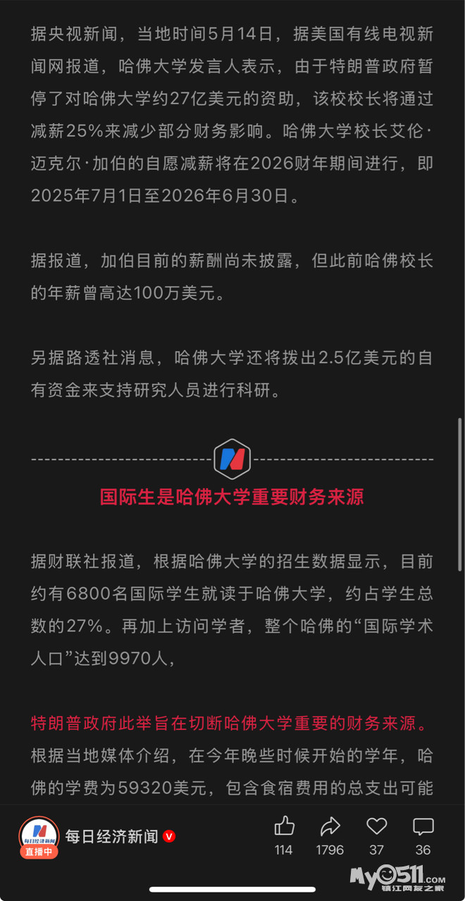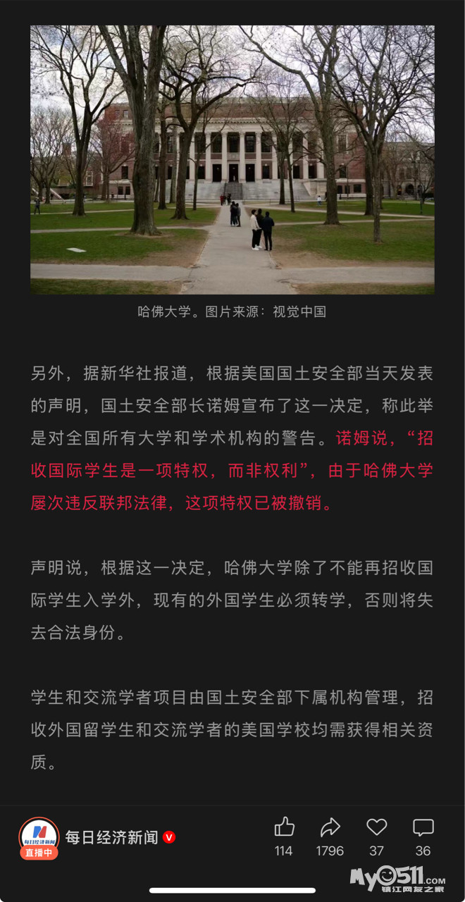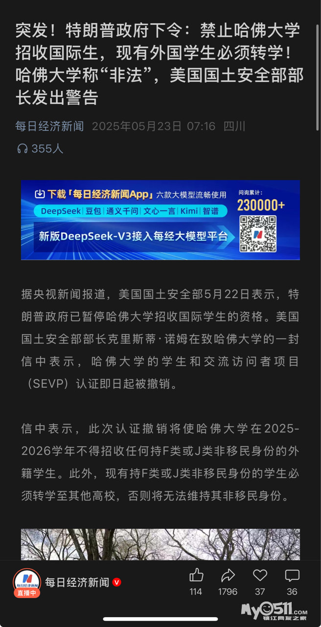 » 突发!特朗普政府下令:禁止哈佛大学招收国际生,现有外国学生必须转学!