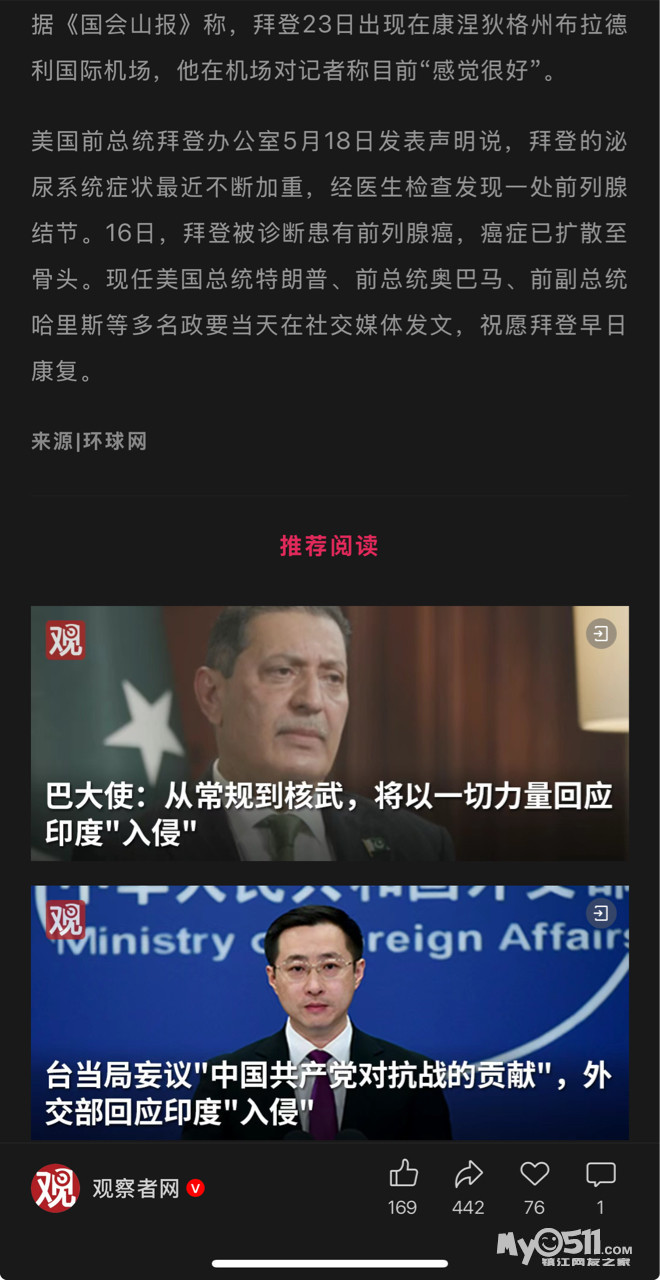» 拜登确诊癌症后首露面